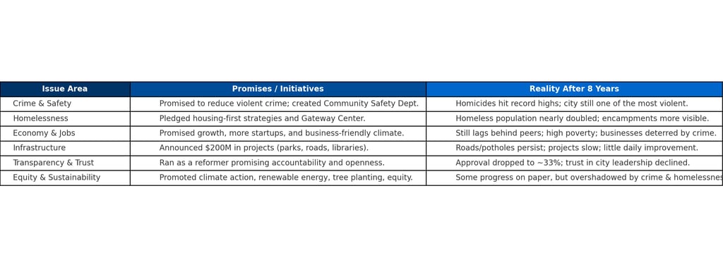 Keller has touted more than $200 million invested into infrastructure, parks, and libraries. Yet, residents still see crumbling roads, potholes, and neglected neighborhoods. Projects are slow, over-budget, or unevenly distributed.